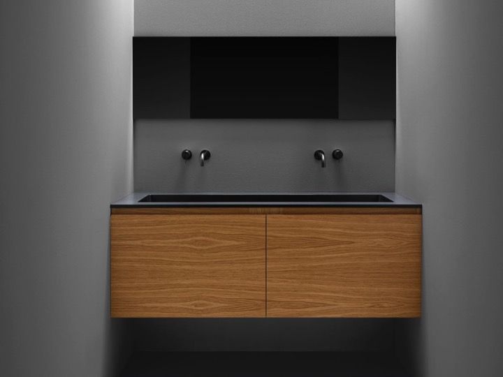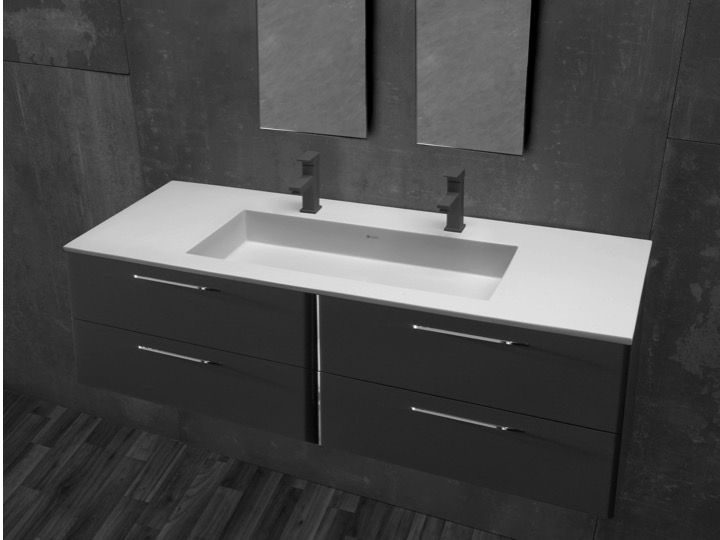 Umywalka podwójna umywalka podwieszana lub wpuszczana w szafce łazienkowej, żywica mineralna OSolid Plus, efekt matowego kamienia o fakturze lub matowa gładka tekstura.