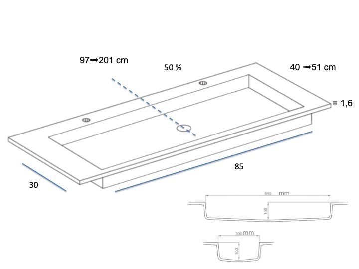 - Umywalka 30 x 85 x 11 cm