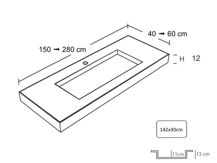 - Umywalka: 30 x 90 x 11 cm