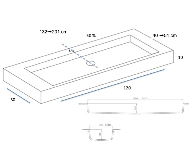 - Umywalka 30 x 120 x 11 cm
