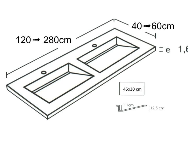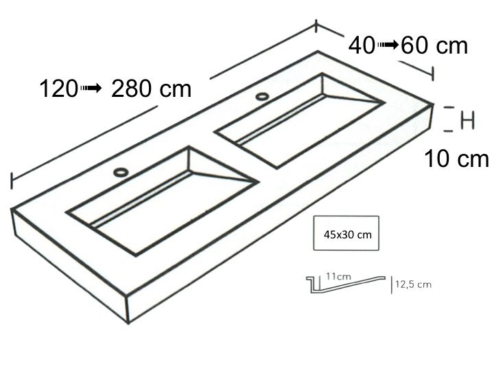 Umywalka podwójna umywalka, 50 x 190 cm, wisząca lub wpuszczana - double coper 45