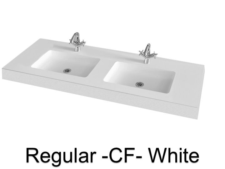 Podwójna umywalka na górze podwieszana lub wpuszczana w meble łazienkowe, z żywicy mineralnej OSolid Plus, z efektem matowej faktury lub matowej gładkiej fakturze.
