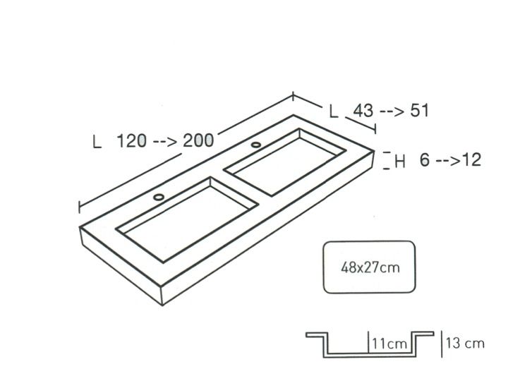 Podwójna umywalka, 190 x 46 cm, podwieszana lub wpuszczana - regular 50 double