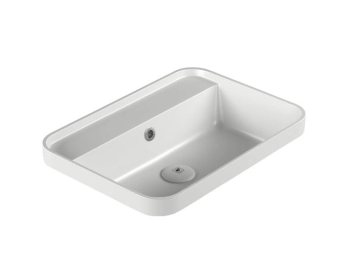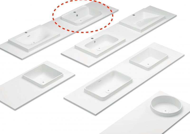Umywalka wisząca lub nablatowa, na meblach łazienkowych, z żywicy mineralnej OSolid Plus, gładkie matowe wykończenie.