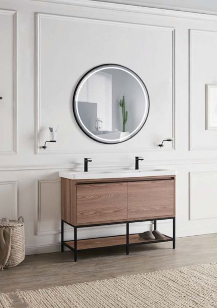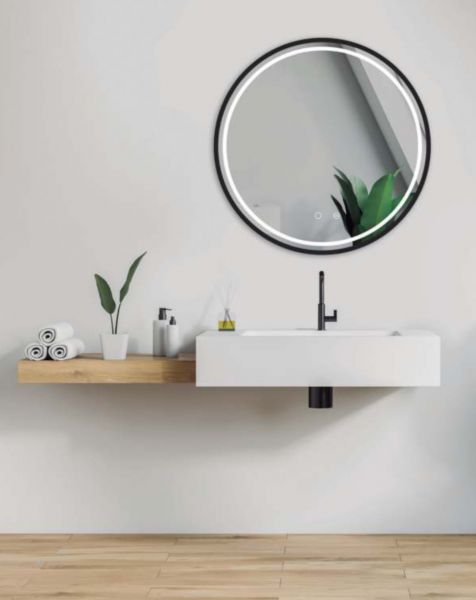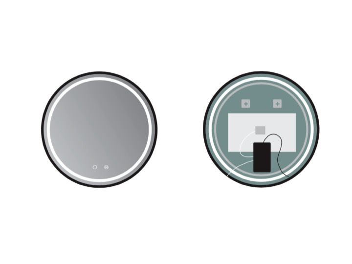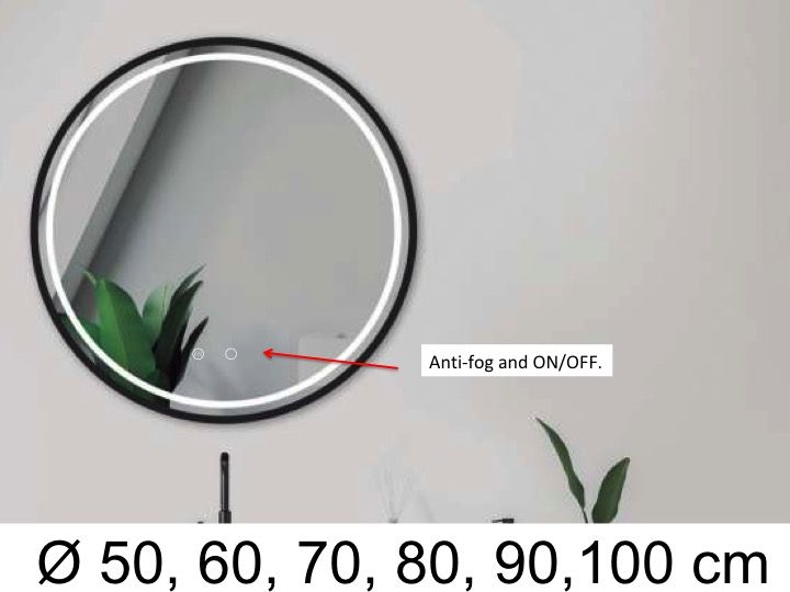 Okrągłe lusterko, oświetlenie przednie, z czujnikiem przeciwmgielnym i ON/OFF. Regulowany kolor LED; gorące, neutralne i zimne, więc kiedy intensywność. Czarna matowa ramka.