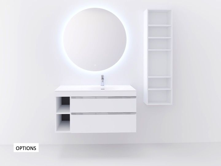- Meble dostarczane zmontowane, zawieszone na regulowanych puszkach zabezpieczających przed oderwaniem. Przestrzeń sanitarna: 70 mm.