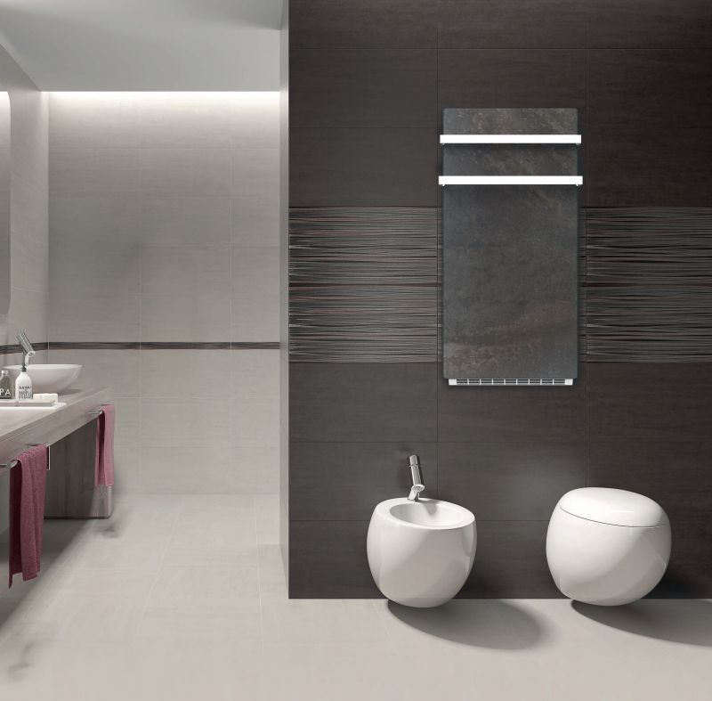 Designerskie podgrzewacze do ręczników, elektryczne, z akumulatorem ciepła, z dmuchawą, które działają całkowicie niezależnie i są doskonale zintegrowane, zapewniając harmonijną estetykę - STONEHENGE